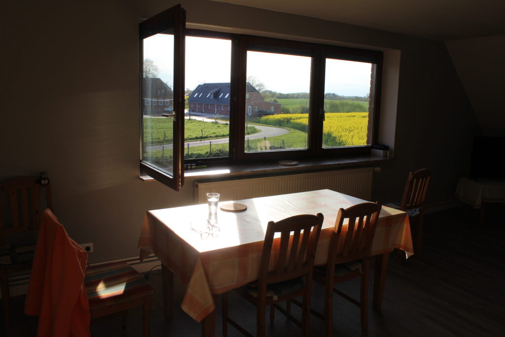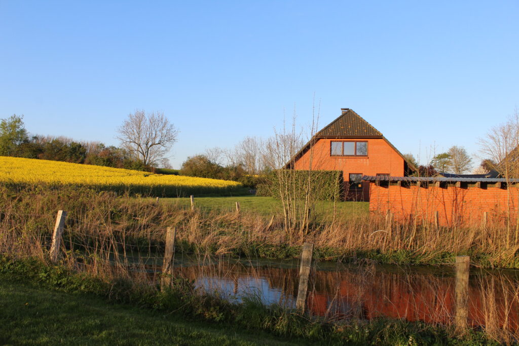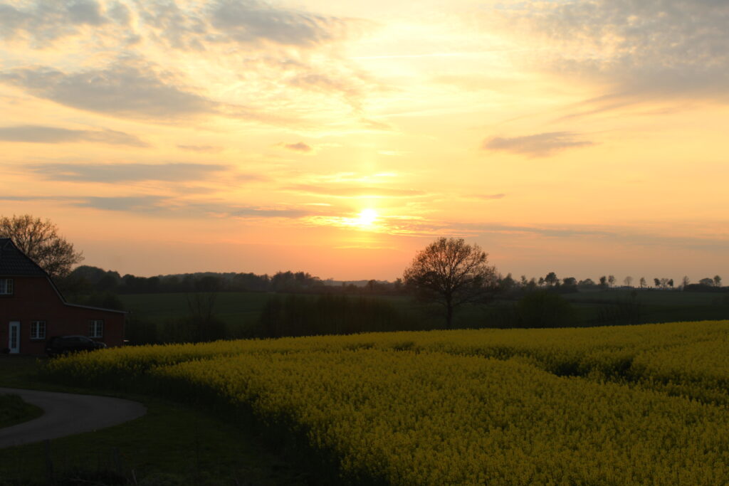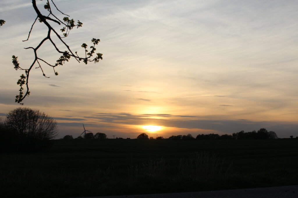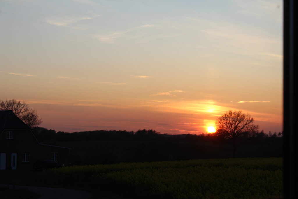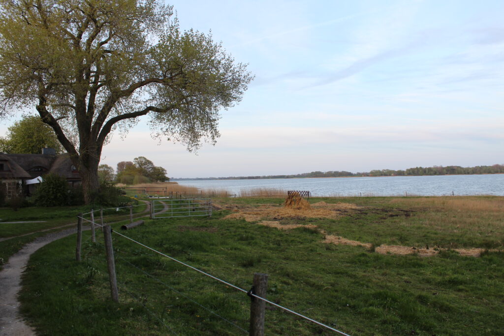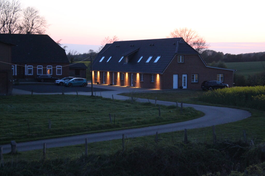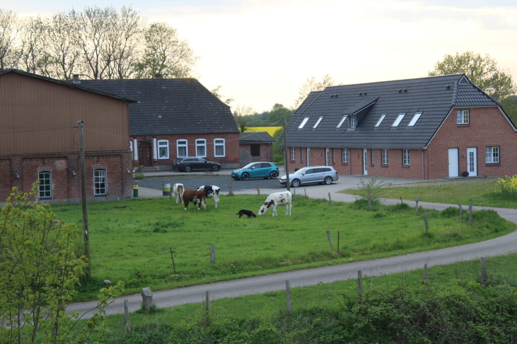 Das war ja wieder eine Entdeckung: der ehemalige Bauernhof von Familie Witt in Akeby! Nur ein paar Häuser mit Fewos drin, ein Reiterhof nebenan und sonst Ruhe, keine Straße vorm Haus, dafür Hühner nebenan, 4 Kühe und Rauchschwalben und vieles mehr…! Und die tolle Aussicht nach Westen mit Sonnenuntergang – natürlich…!