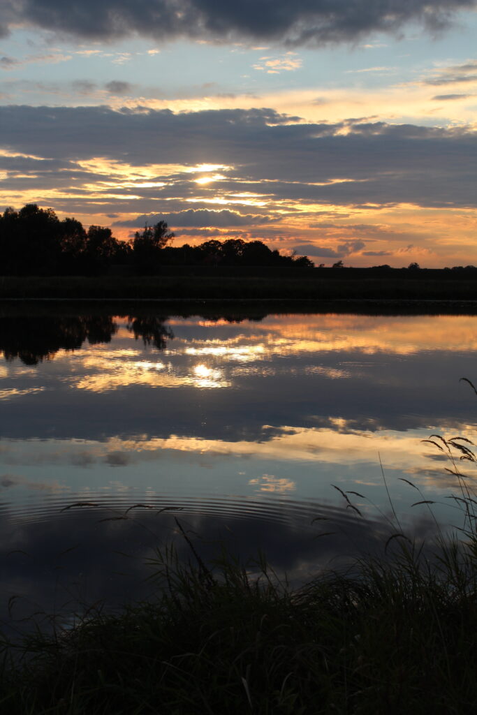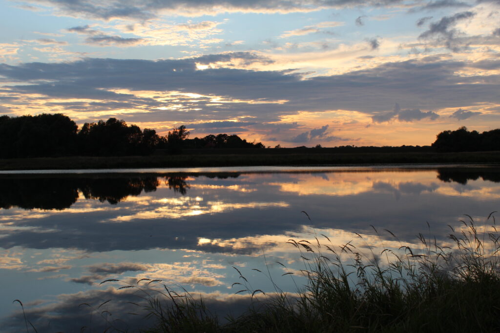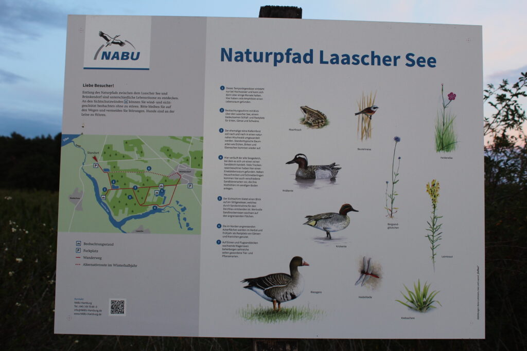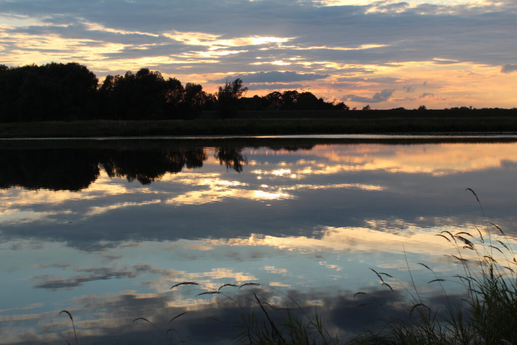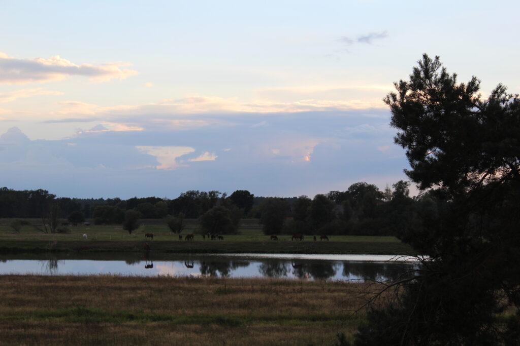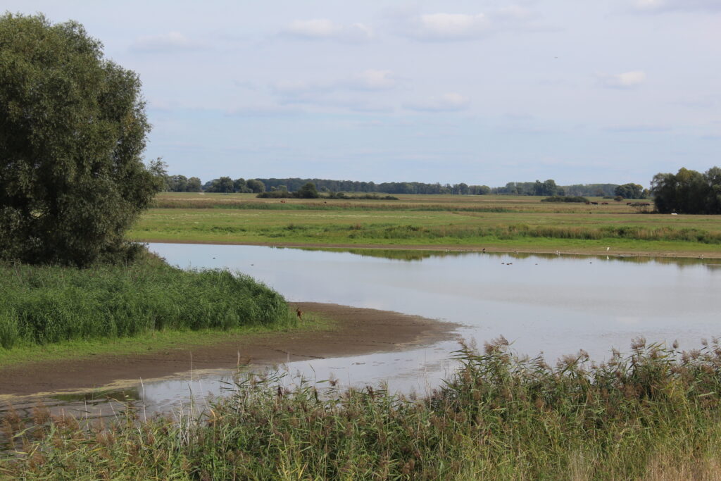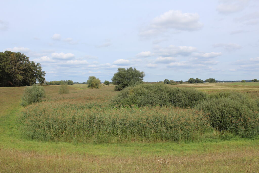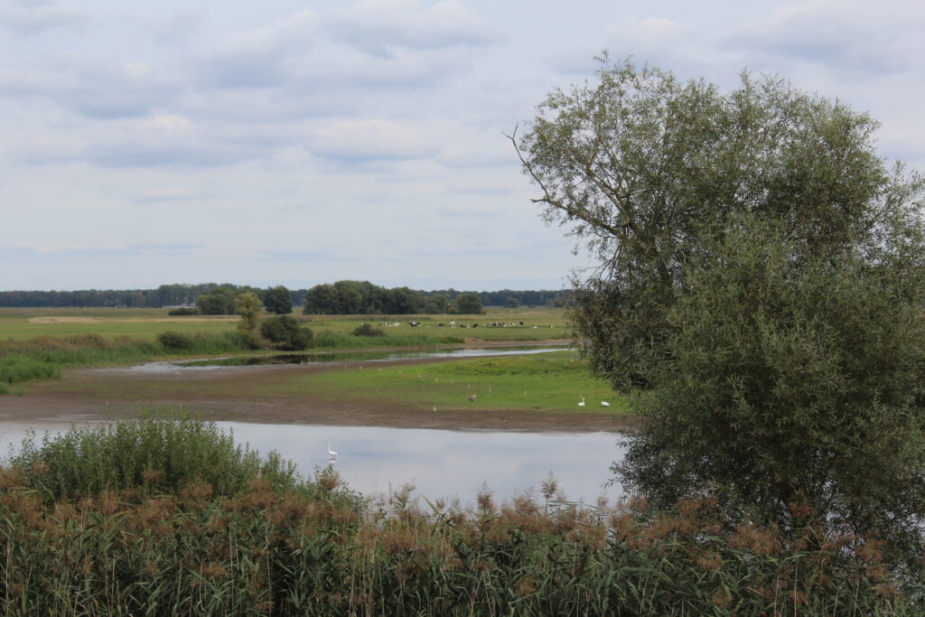 Die Aland ist ein Zufluss zur Elbe bei Schnackenburg. In der Alandniederung ist 2021 ein neues Auwaldgebiet geschaffen worden durch Öffnung des Elbedeiches. Da sind wir diesmal noch nicht hingekommen, aber an der Aland war es auch schön – man beachte das Hornissennest am Aussichtstrum: