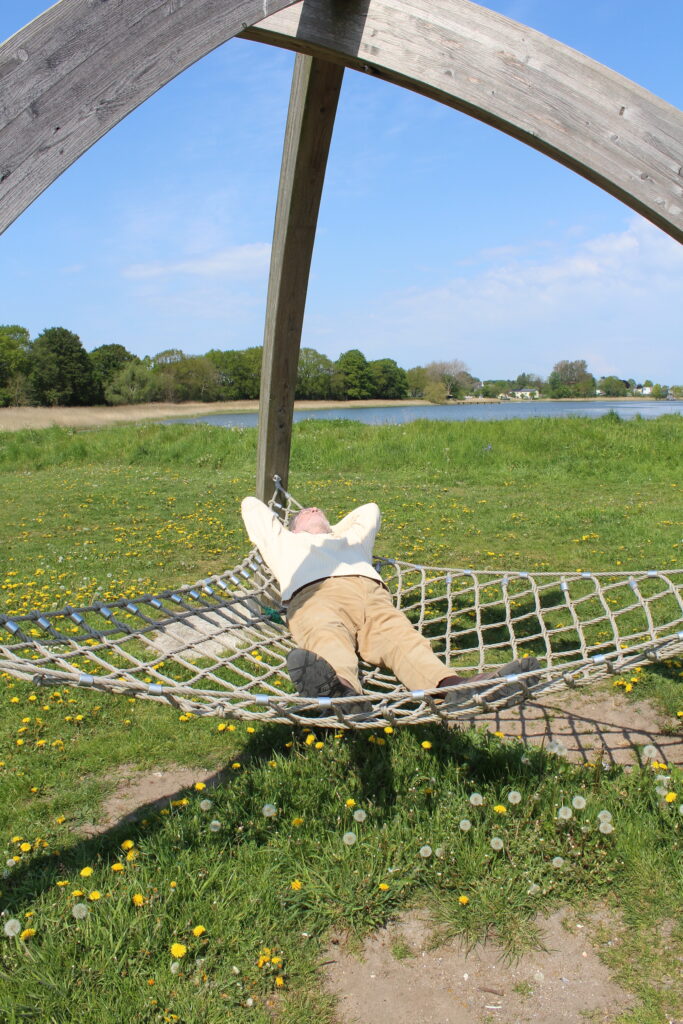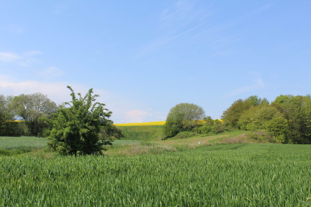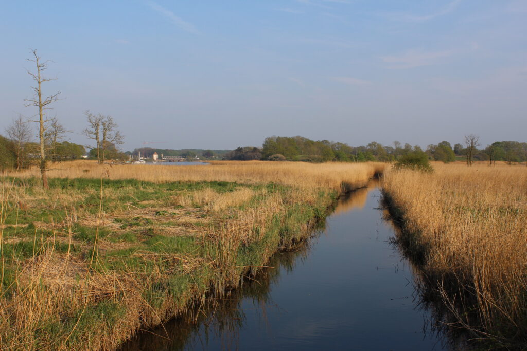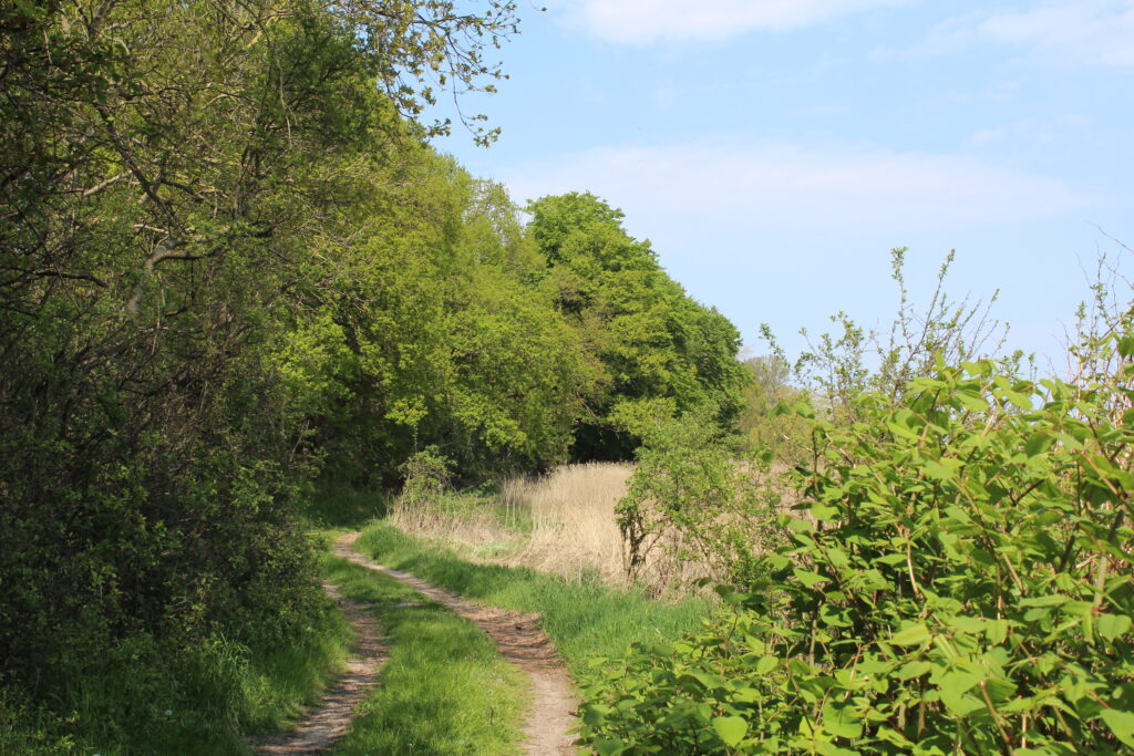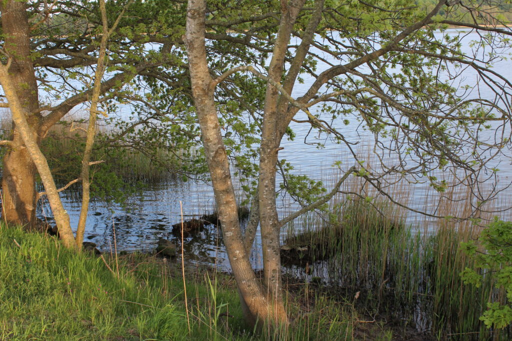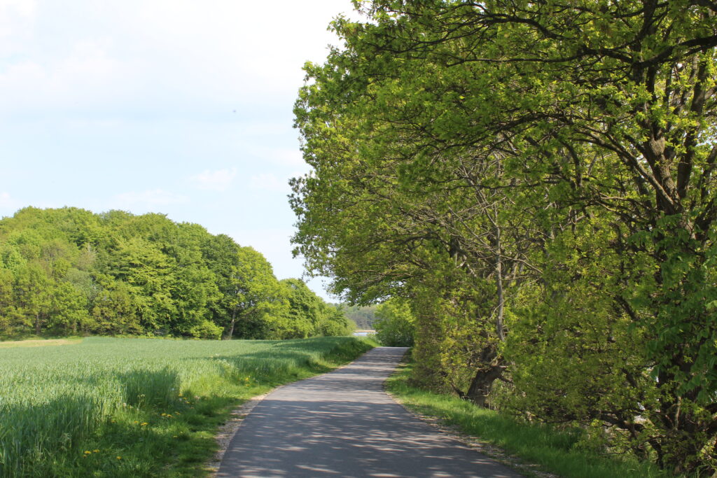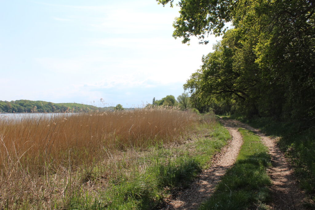 Ca. 10 Tage später sah es schon ganz anders aus, der erste fast-Sommer-Tag! Sehr schön, im Hintergrund schon die Gewitterwolken, aber das Gewitter zog an uns vorbei. Bei der „Hängematte“ ist ein kleiner Badestrand mit Blick auf die Klappbrücke und auf die Schlei mit Segelbooten, wenngleich da wenig Wind war. Und der Weg bis zum Ende der Halbinsel war schon richtig sommerlich. Schön!!