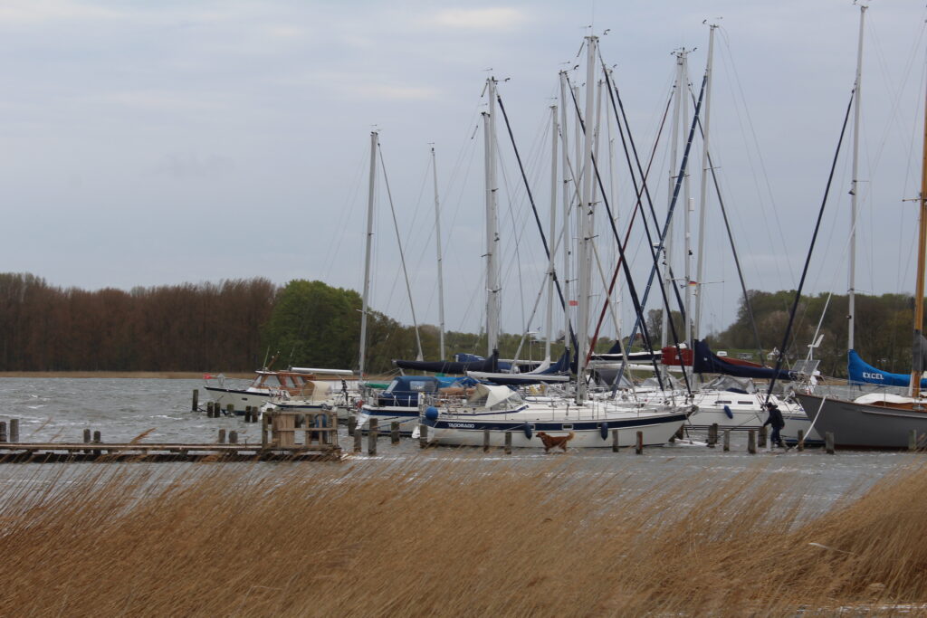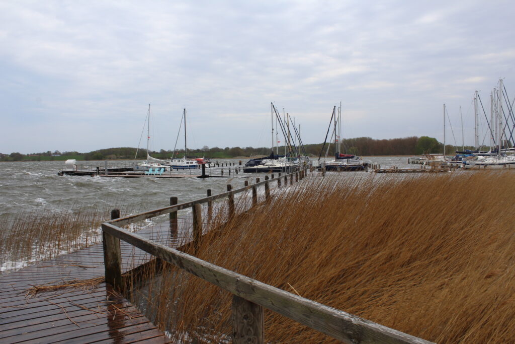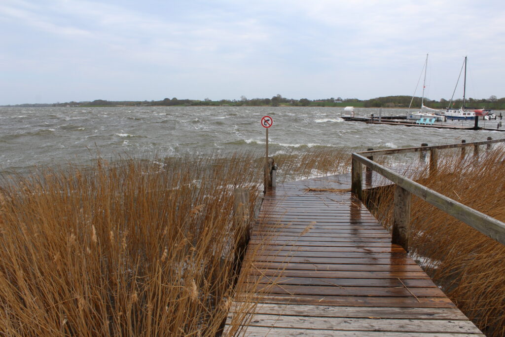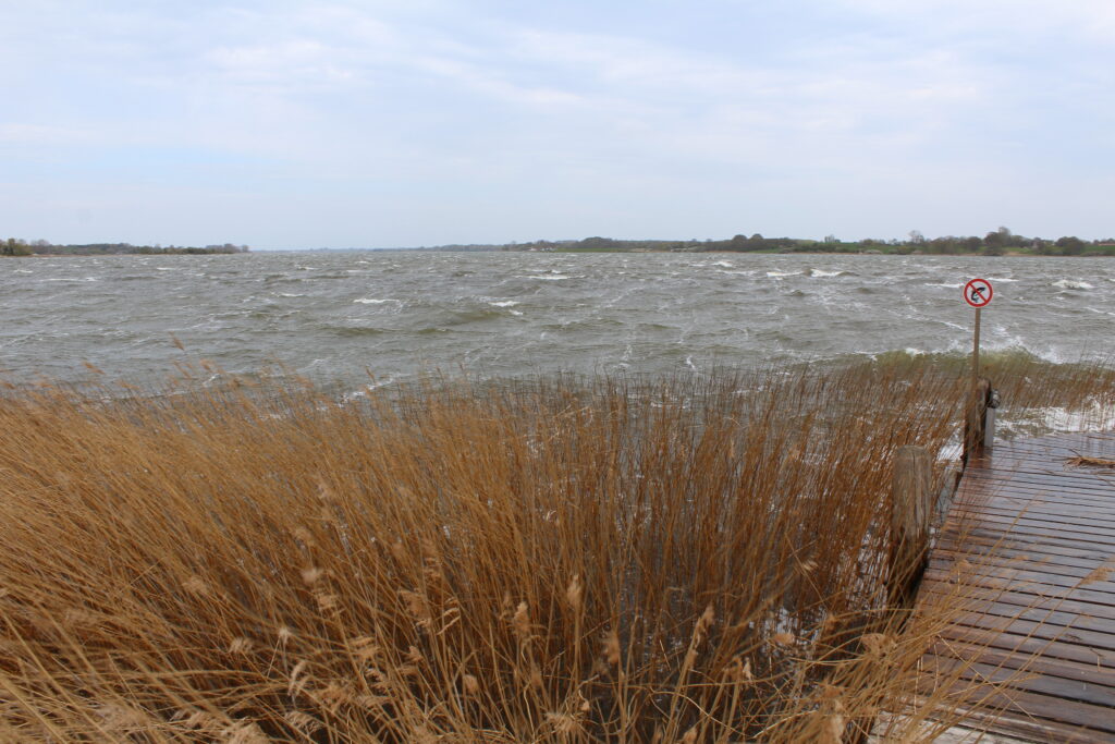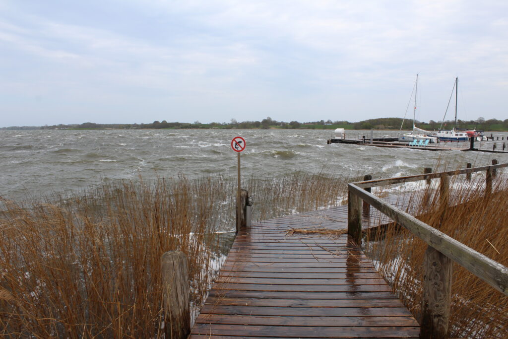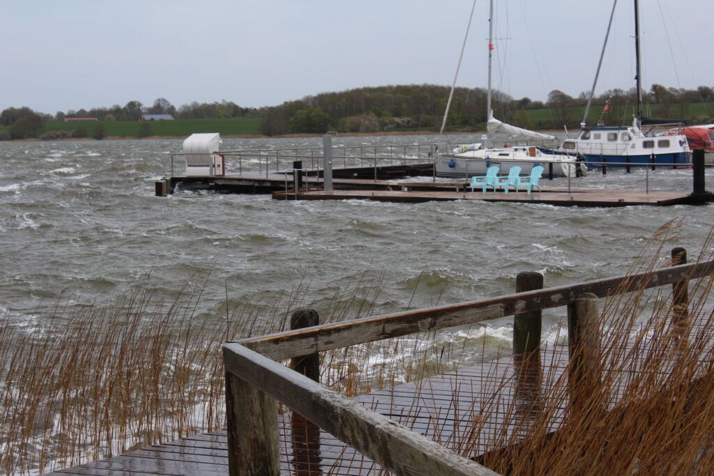 An unserem ersten Tag in Akeby gab es einen klasse Sturm – so aufgewühlt haben wir die Schlei noch nie gesehen! Aber der Wind war eisekalt, es war ja schließlich erst der 5. Mai!